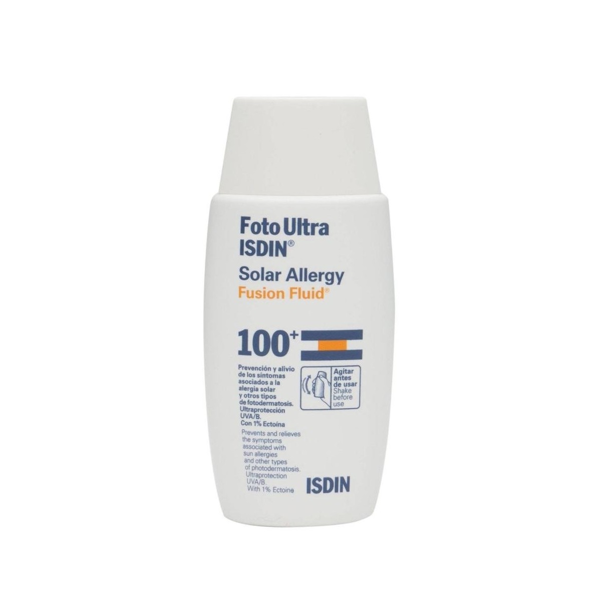 Fotoultra isdin 100 solar allergy ff 50m De la marca Isdin En personas con alergia solar previa, Solar Allergy ha demostrado que reduce un 75% los síntomas de la alergia y, en concreto, un 95% el picor. Empezando el tratamiento 15-30 días antes de la exposición al sol y continuándolo durante todo el periodo de exposición, la piel está protegida. La ectoína al 1% refuerza el mecanismo de protección natural de la piel y la hace más resistente frente a las agresiones de la radiación solar. Combinada con un SPF 100+, se convierte en el fotoprotector más potente para la piel fotosensible. Ofrece una protección 2 veces superior al mínimo requerido en un protector solar SPF 50+ frente a los rayos UVA, estimuladores de la alergia solar. Con eficacia demostrada. Si necesitas ayuda, contacta con nos